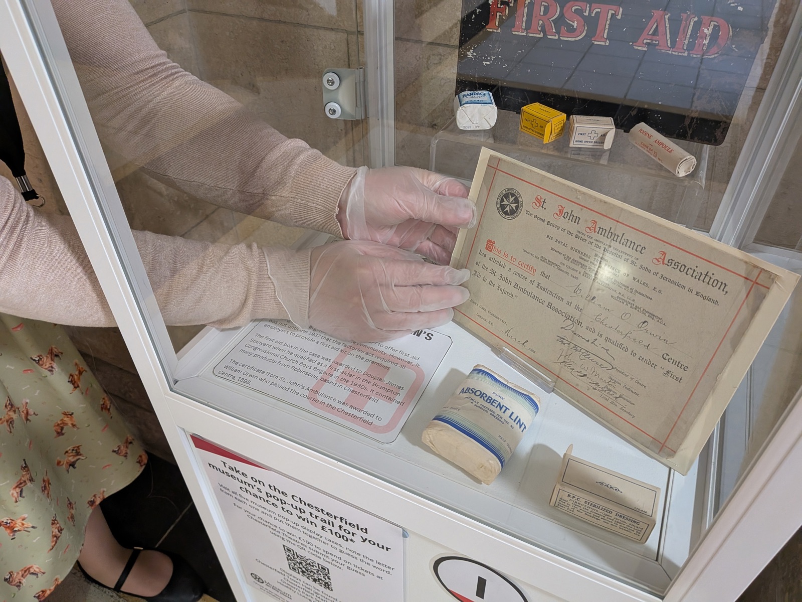 Above: Chesterfield Museum Collections Officer Charlotte McCrory sets up one of the display cases at Chesterfield Town Hall.